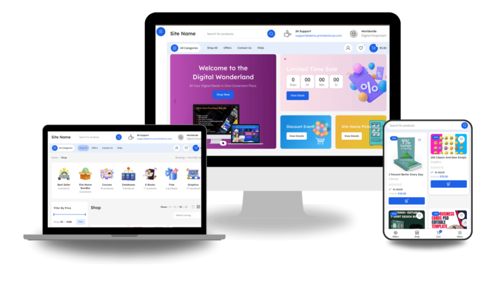 Start Selling Your Digital Products With Readymade Website with 400+ preloaded products Easy-to-Use And Fully Customizable Website!